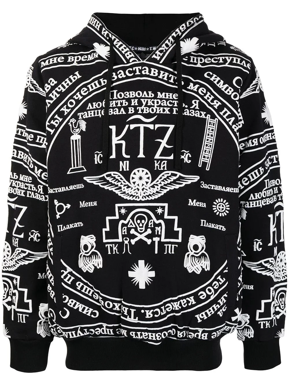 oversized church print hoodie black/white cotton all-over graphic print logo print at the chest drawstring hood long sleeves straight hem Imported Composition Cotton 100% SIZE & FIT Model measurements Height 5 ft 10 in(1.79 m) Bust/Chest 32.28 in(82 cm) Hips 35.43 in(90 cm) Waist 24.01 in(61 cm) FittingInformation This piece is unisex. Please take care when selecting your size Designed for a loose fit for men and an oversized fit for women Made with a mid-weight fabric Washing instructions Machine Wash