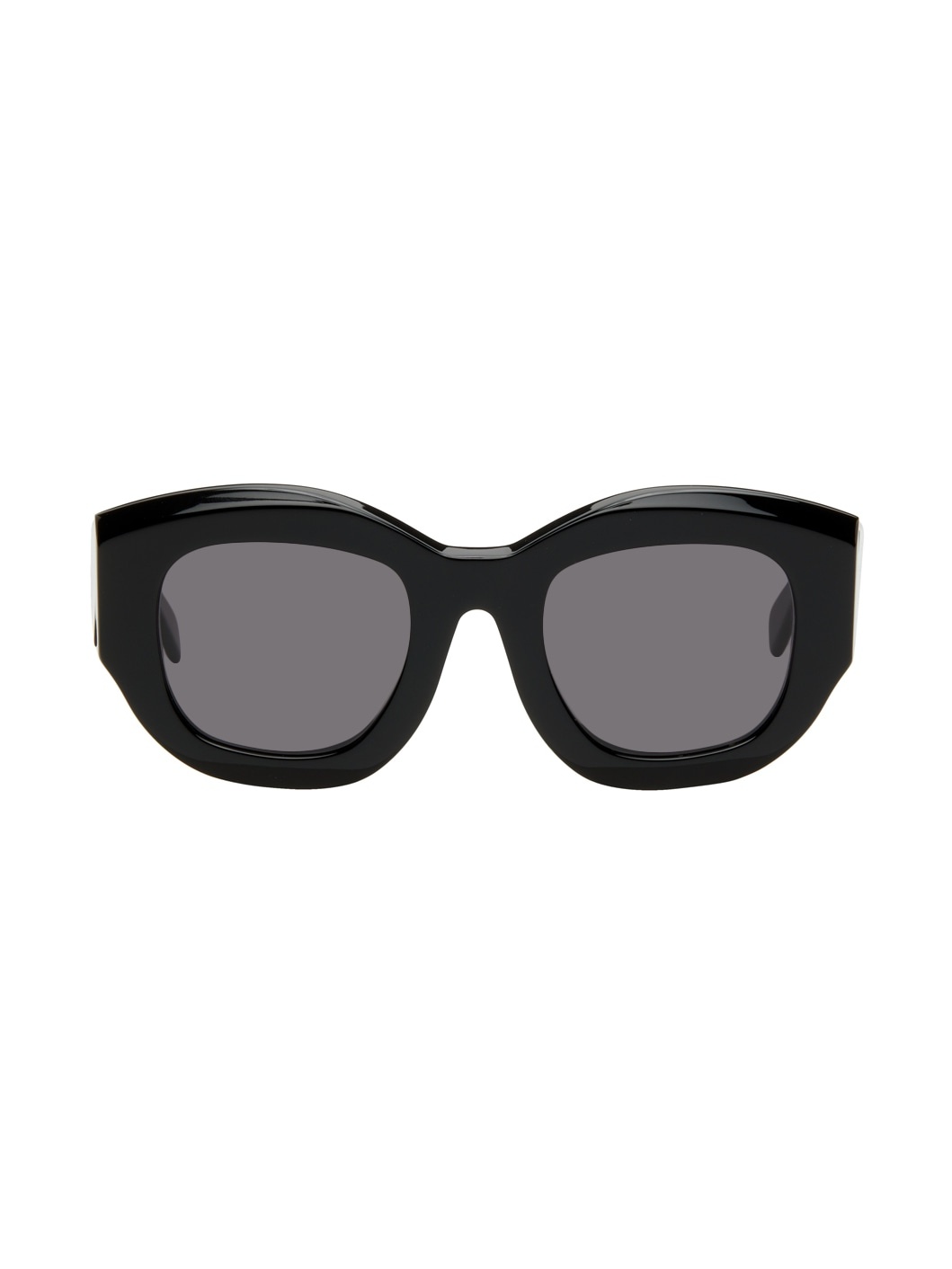 Handcrafted round acetate-frame sunglasses in black. · Tonal lenses · Integrated nose pads · Soft leather case included · Size: 50.24 145 Supplier color: Black shine Acetate.