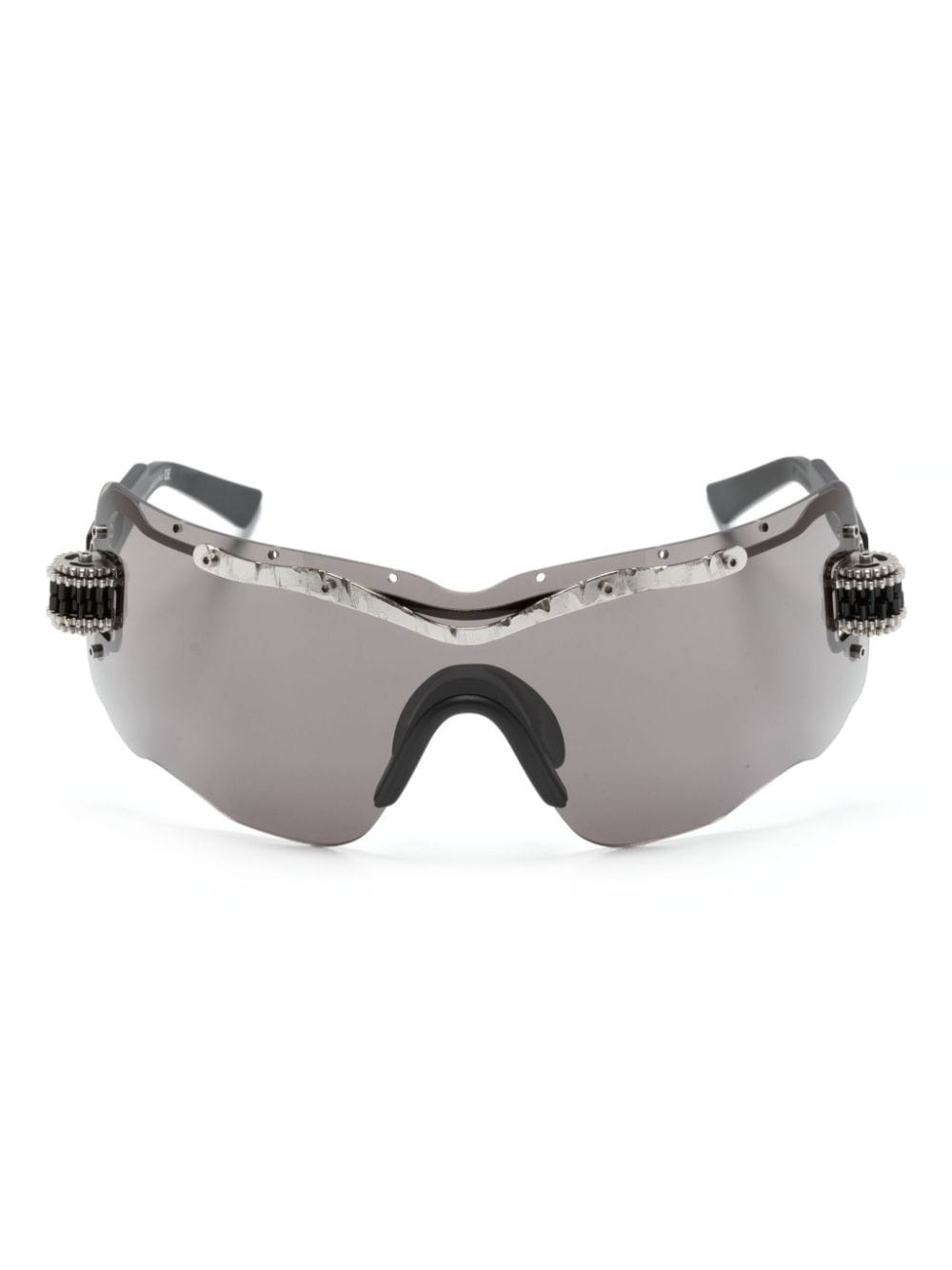 E15 oversize-frame sunglasses Highlights - Black - Metal/acetate - Oversize frame - Grey tinted lenses - Straight arms - Curved tips - These glasses come with a protective case. Composition Acetate 100%, Metal 100% SIZE & FIT Measurement Arm Length 4.8 in(12 cm) Bridge Width 1.1 in(3 cm) Lens Diameter 3.5 in(9 cm) Total Width 6.3 in(16 cm)