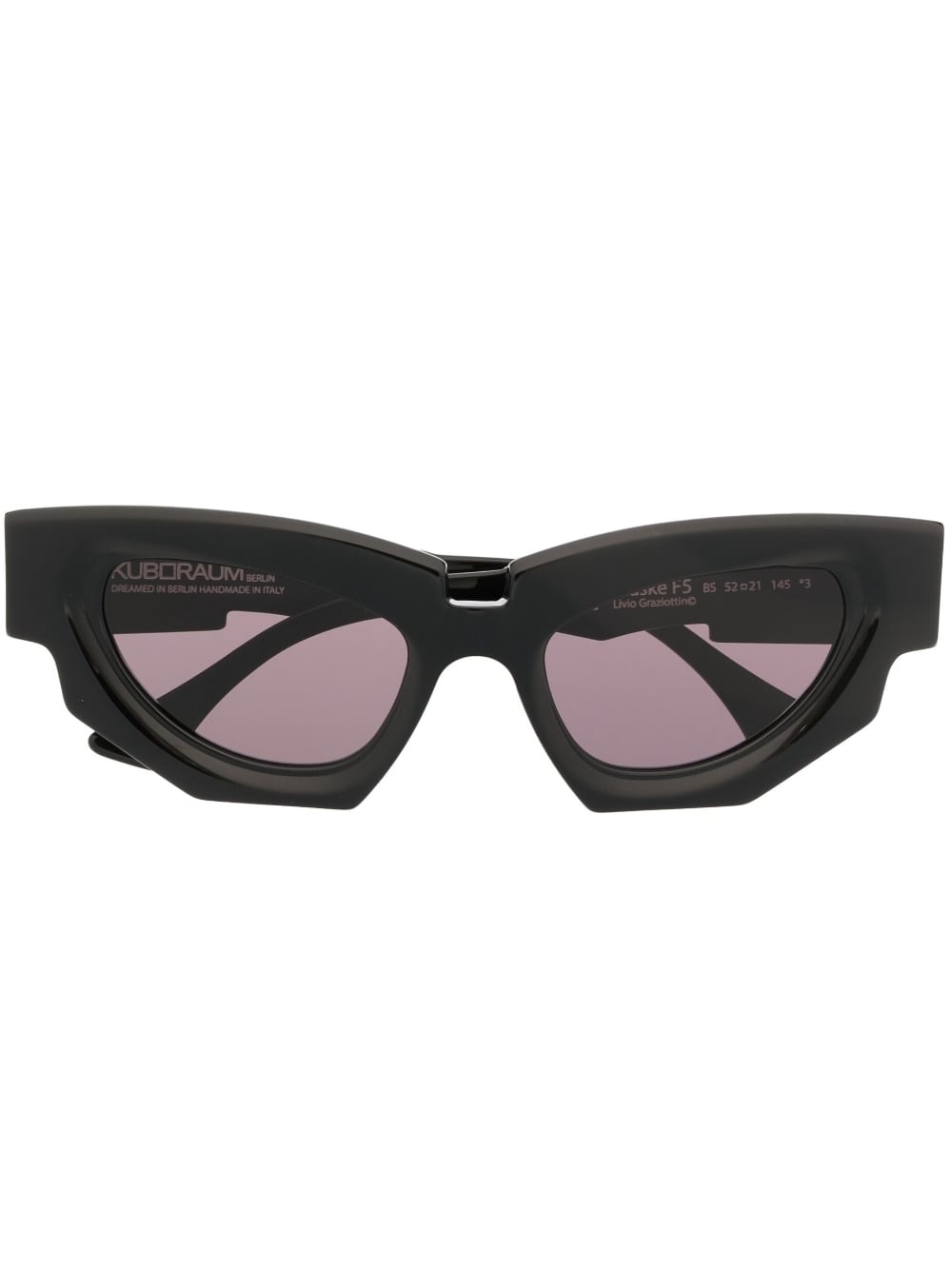 cat-eye tinted sunglasses cat-eye tinted sunglasses from KUBORAUM featuring black, tinted lenses, cat-eye frame, straight arms and curved tips. These glasses come with a protective case.. Made in Italy Composition Acetate 100% SIZE & FIT Measurement Arm Length 5.7 in(14.5 cm) Bridge Width 0.8 in(2 cm) Lens Diameter 2 in(5 cm) Total Width 6.1 in(15.5 cm)
