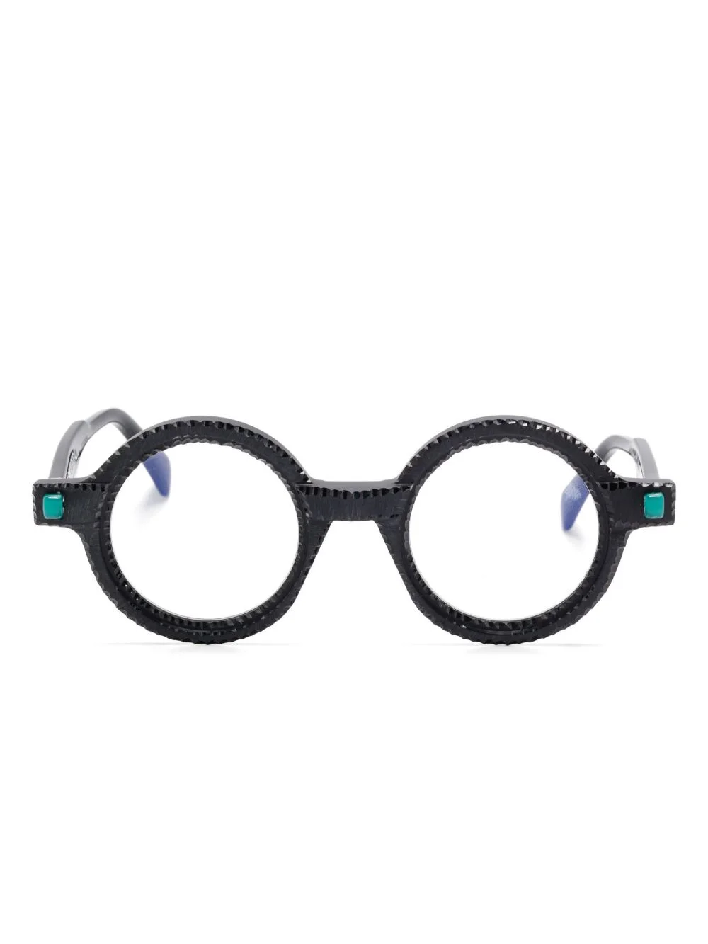 Maske Q7 glasses Highlights - Black - Curved arms - These glasses come with a protective case. - All glasses from farfetch are sold as non-prescription frames. Made in Italy Composition Acetate 100% SIZE & FIT Measurement Arm Length 5.7 in(14.5 cm) Bridge Width 0.94 in(2.4 cm) Lens Diameter 1.81 in(4.6 cm) Total Width 5.82 in(14.8 cm)