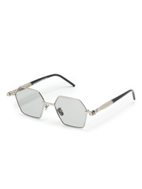 P70 geometric-frame sunglasses Highlights - Silver-tone - Black - Metal - Engraved geometric frame - Grey tinted lenses - Raised bridge - Nose pads - Logo-engraved arm - Straight arms - Curved tips - These glasses come with a protective case. Made in Italy Composition Metal (Other) 100% SIZE & FIT Measurement Arm Length 5.7 in(14.5 cm) Bridge Width 0.7 in(1.8 cm) Lens Diameter 2.12 in(5.4 cm) WIDTH 5.78 in(14.7 cm)