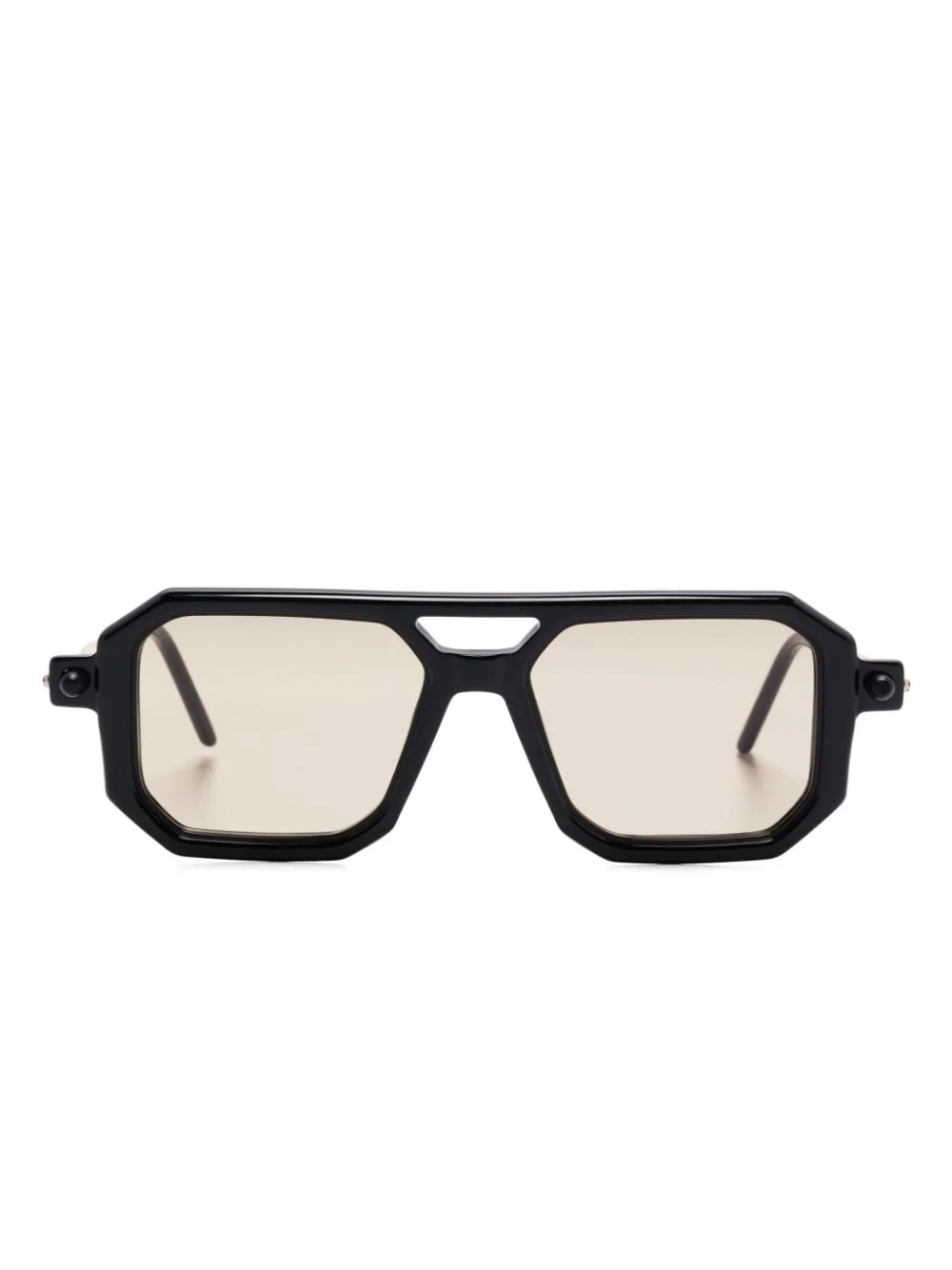 P8 sunglasses Highlights - Black - Pilot frame - Brown tinted lenses - Double bridge - Rivet detailing - Colour-block sculpted arms - Curved tips - Nose pads - These glasses come with a protective case. Made in Italy Composition Acetate 100% SIZE & FIT Measurement Arm Length 5.7 in(14.5 cm) Bridge Width 0.66 in(1.7 cm) Lens Diameter 2.08 in(5.3 cm) Total Width 6.02 in(15.3 cm)