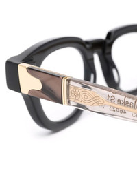 square-frame glasses black/gold tone square frame clear lenses gold-tone hardware straight arms curved tips All glasses from FARFETCH are sold as non-prescription frames. These glasses come with a protective case. Made in Italy Composition Acetate 100% SIZE & FIT Measurement Arm Length 5.7 in(14.5 cm) Bridge Width 0.9 in(2.3 cm) Lens Diameter 1.81 in(4.6 cm) Total Width 5.59 in(14.2 cm)