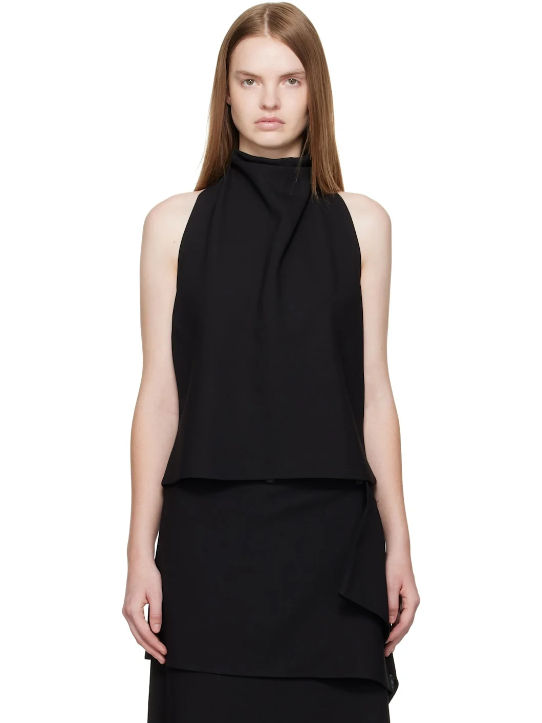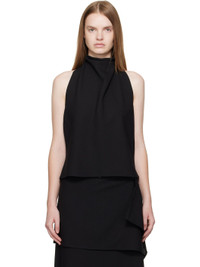 Virgin wool twill top. · Draping throughout · Button fastening at halter neck · Low back Supplier color: Black 100% virgin wool. Made in Hungary 252190F111000
