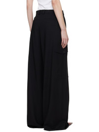 Virgin wool twill trousers. · Belt loops · Four-pocket styling · Zip fly · Adjustable button tab at cuffs · Concealed button fastening at inner cuffs · Flap pocket at outseams Supplier color: Black Body: 100% virgin wool. Lining: 100% silk. Made in Hungary 251190F087004