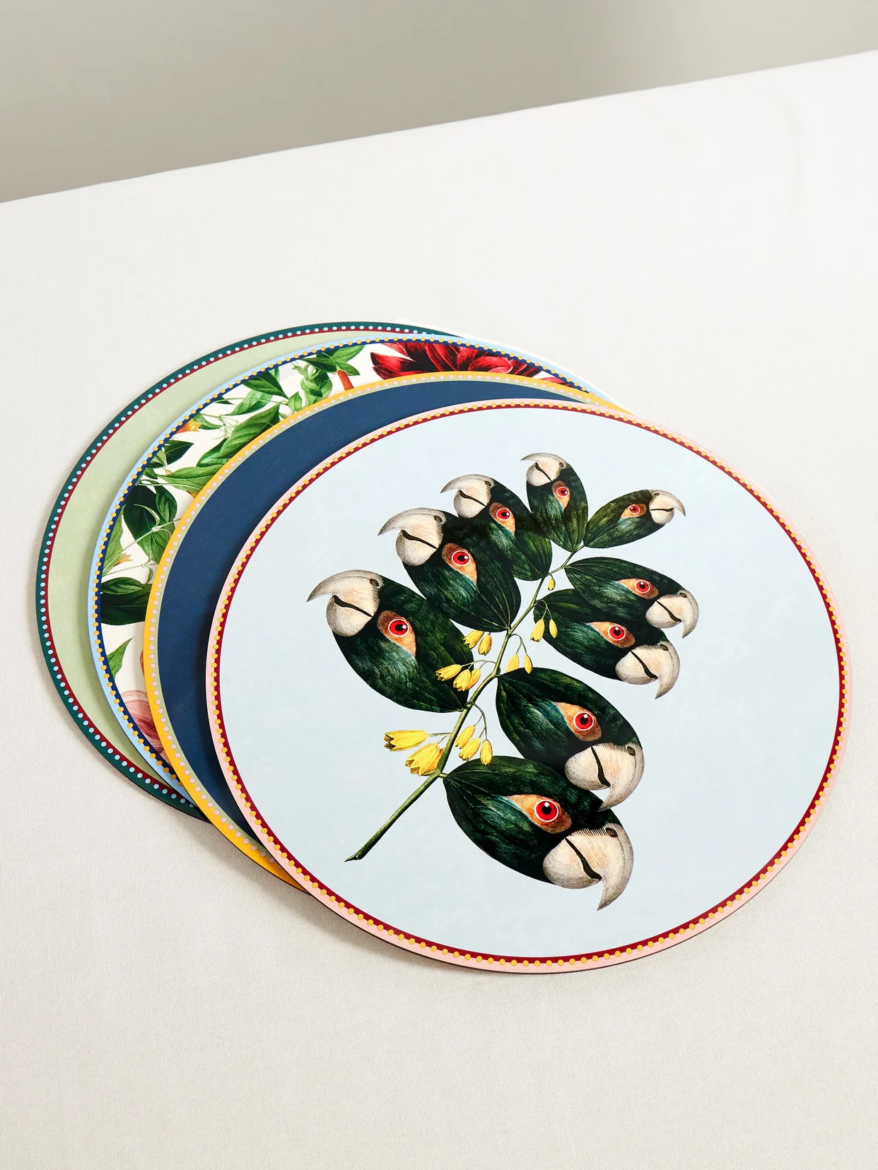 La DoubleJ's placemats are from a collaboration with noted surrealist Beto Val. In a set of four, they're made from cork-backed wood and printed with an eclectic menagerie.