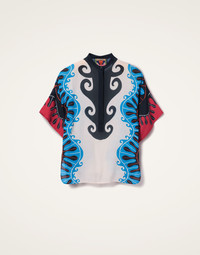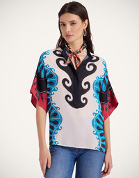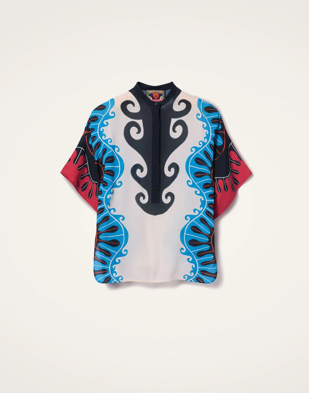 Equal parts androgynous and elegant, this blouse is the perfect blend of California cool and Milanese chic as part of our collaboration with L.A.-based brand, Mother. With short sleeves and a hip skimming hem, this slightly oversized style is the perfect transition piece, easily layered under a jean jacket for Spring sojourns in the city or tied in the knot at the waist for a laid-back weekend at the beach. Details & Fit - LDJ x Mother Collection - Crepe de chine - Boxy short sleeved Shirt - Made in Italy - Composition: 100% viscose - The model is 180 cm / 5′ 11″ tall and wears a size S