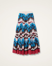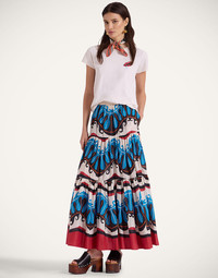 The Big Skirt’s voluminous tiers of printed fabric can take it from a casual outing to a major occasion-moment in a snap. Pockets, an elasticated waistband and an oversized fit make it a weekday to weekend winner to throw on with a white tee and blazer or dial things up with a patterned Turtleneck for a molto maximalist hit. It's extra beguiling in this Pacific print, designed exclusively for our collection with L.A.-based design brand, Mother, particularly in this crisp cotton voile Details & Fit - LDJ x Mother Collection - Three-tiered, voluminous ruched skirt - Elastic waist with an oversized fit - Side-slit concealed pockets - 100% Made in Italy - Composition: 100% cotton - Garment length: 65cm - The model is 180 cm / 5′ 11″ tall and wears a size S