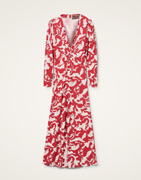 A dress so fabulously feminine we had to give it a chromosomal appropriate title. Crafted from our flowy Italian jersey, her long sleeves and slinky, floor-length skirt bounce with your every strut, ensuring you make an entrance no matter the occasion. Her sexy slit up the front means she makes for a seriously saucy night out look, but we love her over trousers as a chic layering look. These pieces arrive in our dazzling Mamma and Dea Dahlia print exclusively for our collaborative collection with Californian design brand, Mother. Details & Fit - Flowy jersey - Long arrow sleeves cinched at the cuff - Slit up the skirt - Twisted detail at waist. - Open V neck - 100% Made in Italy - Composition: 92% Viscose 8% Elastane - The model is 177 cm / 5′ 9.7″ tall and wears a size S
