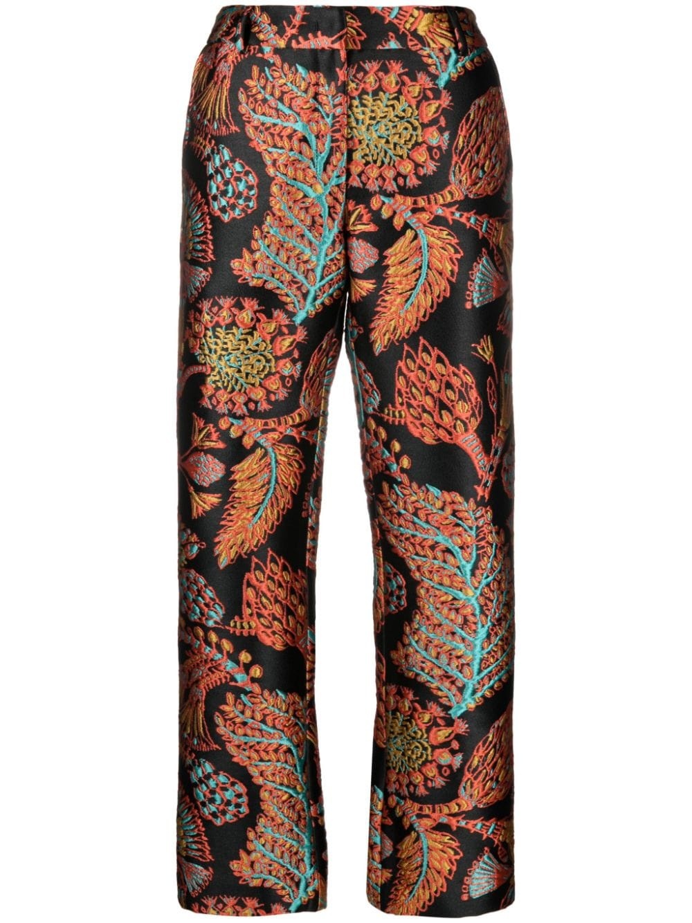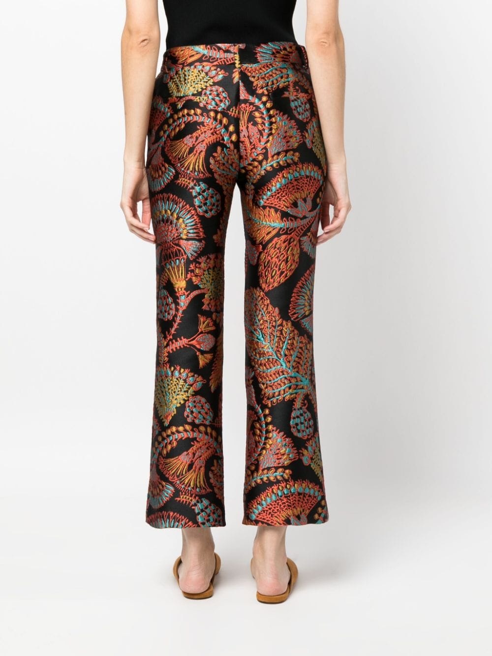 24/7 jacquard trousers These La DoubleJ trousers are defined by a playfully cropped design. Decorated with a vibrant jacquard pattern throughout, the piece exhibits the label's penchant for colourful motifs. Highlights - Black/multicolour - Patterned jacquard - High waist - Concealed front fastening - Belt loops - Straight leg - Cropped - Two side slit pockets Composition Polyester 93%, Silk 4%, Nylon 3% SIZE & FIT Model measurements Height 5 ft 11 in(1.8 m) Bust/Chest 30.7 in(78 cm) Hips 35 in(89 cm) Waist 24.8 in(63 cm) FittingInformation Designed for a straight-leg fit, these trousers allow for a close fit at the waist and an unrestricted, comfortable fit over the leg Made from a midweight non-stretch fabric This piece fits true to size – take your usual size