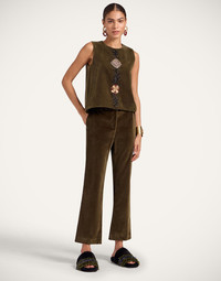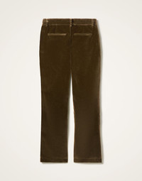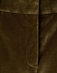 These pants were made for wow-ing. With a cigarette shape, the 24/7 falls between our Hendrix Pant and Saturday Night Pant styles, and is infinitely flattering on all body shapes. You’ll forget all about your favorite jeans when you get your hands on these stunning Italian velvet beauties, ultra chic and versatile in this dreamy shade of Moss green to slip into your day-to-night rotation through winter and beyond. Details & Fit - Coat velvet - Cigarette Cut - Slightly flared hem - 4 pockets - Ankle crop - Fly button and zip - Equipped with belt loops - 100% Made in Italy - Composition: 100% Cotton - The model is 176 cm / 5′ 9″ tall and wears a size S