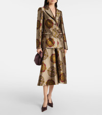 La DoubleJ works with top Milanese textile manufacturers to bring archival patterns to life on its signature eclectic styles. The 24/7 blazer is designed with a vibrant signature print, peak lapels and a classic buttoned front. Product Details - Material: 72% polyester, 28% silk - Care instructions: dry clean - Made in Italy - Designer color name: Nucleus - Item color: multicolor - Lining: 100% polyester - Peak lapel - Closure: buttoned front - Pockets: angled chest pocket, welt pockets - Vent: no vent - Item number: P01084446 Size & Fit - True to size - Shoulder pad inserts - Cinched waist - Non-stretchy fabric - Falls below the hip - The model seen in the picture is 178cm-5'10" and wearing a size XS