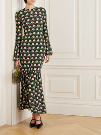 EDITORS'NOTES La DoubleJ specializes in mood-boosting styles rooted in a deep appreciation for vintage clothing. This ‘Alba’ maxi dress is cut from smooth stretch-jersey mapped with a striking floral pattern and has ruffles along the hem and cuffs. SIZE & FIT Model measurements: - Fits true to size, however those who are between sizes should take the smaller size - Designed for a slim fit - Lightweight, stretchy fabric - Model is 180cm/ 5'11" and is wearing a size XSmall - Bust: 81cm/ 32" - Waist: 63cm/ 25" - Hip: 91cm/ 36" DETAILS & CARE - Multicolored jersey - Concealed hook and zip fastening at back - 92% viscose, 8% elastane - Dry clean