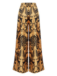 All-over-print palazzo Highlights - Ochre gold/multicolor - Silk - Satin finish - All-over graphic print - Elasticated waistband - Side slit pocket - Flared design Made in Italy Composition Silk 100% Washing instructions Read Manufacturer Guidelines