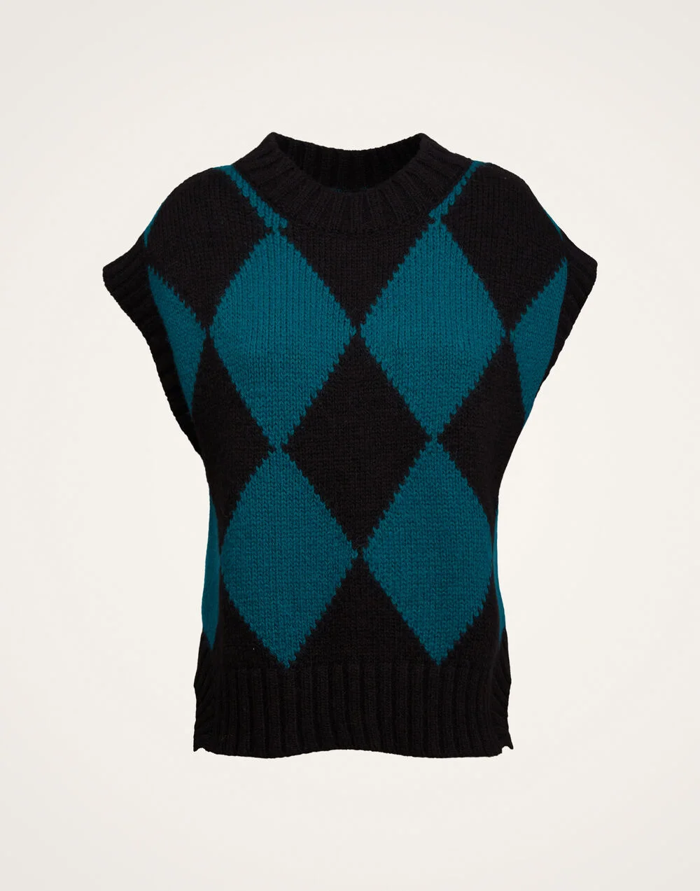 What statement sweater feels better than one crafted from soft boucle wool? Our Argyle Gilet is made in Italy from a texture-fest alpaca wool blend and, in this vibrant green and black color combo, is designed to bring high vibes to winter wardrobes in these vibrant happy hues. With a mock neck and slits on the hips, it’s a stylist's dream with its mannish oversized fit that brings plenty of swag to pretty print dresses or black turtlenecks alike. Details & Fit - Oversized square shape - Mock neck - Two slits on hip - 100% Made in Italy - Composition: 48% Alpaca Superfine 36% Polyacrylic 9% Polyamide 7% Polyester - Garment length: 62cm