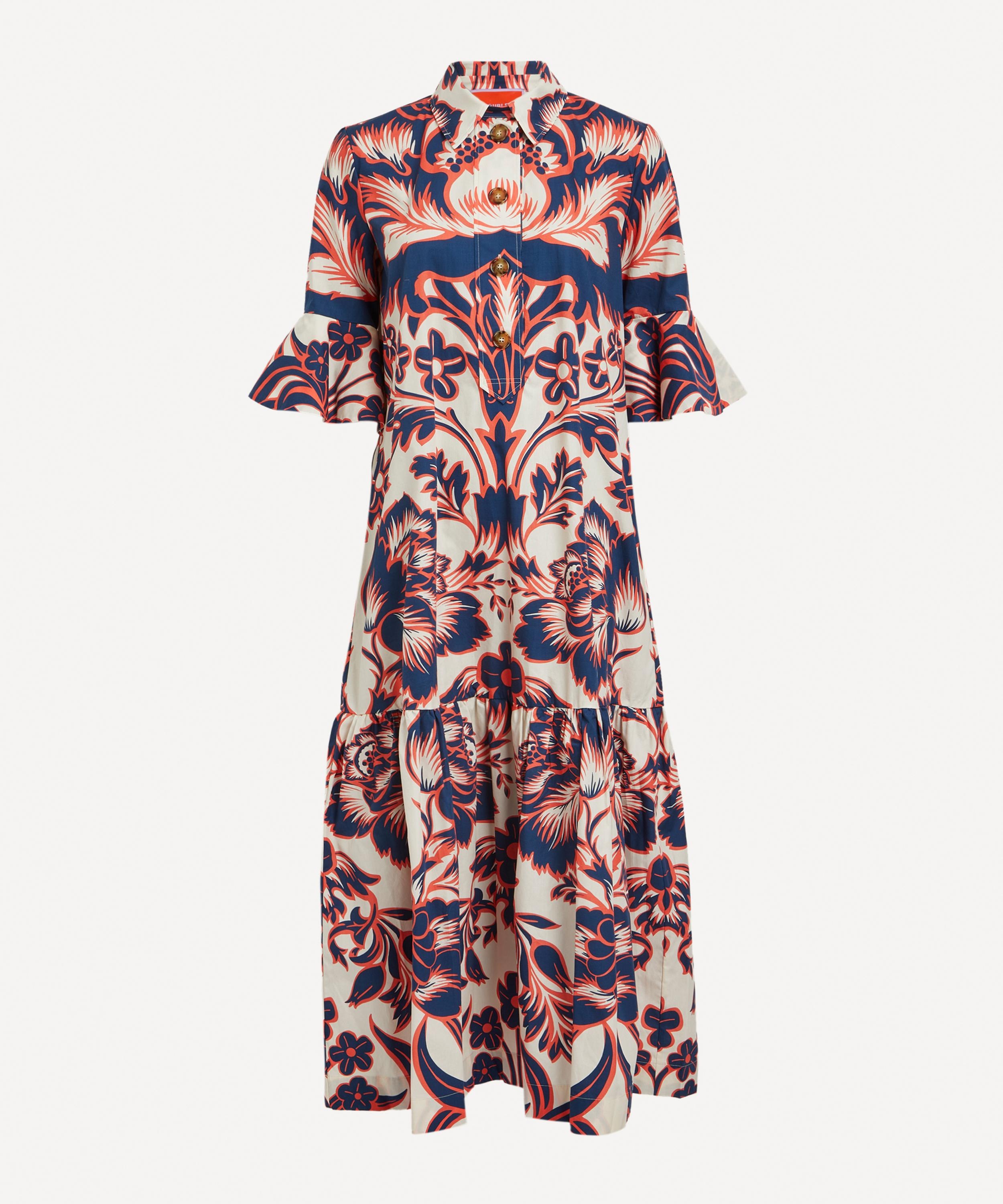 DETAILS Cotton shirtdress Relaxed fit Maxi length Fluted sleeves Point collar Half-buttoned placket Frilled hem Va-Va White print Made in Italy SIZE & FIT Model is 180cm/5ft 11"; Chest: 79cm; Waist: 62cm; Hip: 89cm and wears a size S COMPOSITION & CARE 100% Cotton Dry clean only