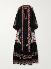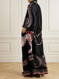 EDITORS'NOTES La DoubleJ's ethereal 'Athena' maxi dress is designed with decorative finishes inspired by romantic styles from bygone eras. It's cut from smooth printed silk and has a pussy-bow neckline. SIZE & FIT Model measurements: - Fits true to size, take your normal size - Designed for a loose fit - Mid-weight, fluid, non-stretchy fabric - Model is 175cm/ 5'9" and is wearing a size Small - Bust: 78cm/ 31" - Waist: 62cm/ 24.5" - Hip: 92cm/ 36" DETAILS & CARE - Black, cream and burgundy silk - Ties at front; button fastenings along front - 100% silk