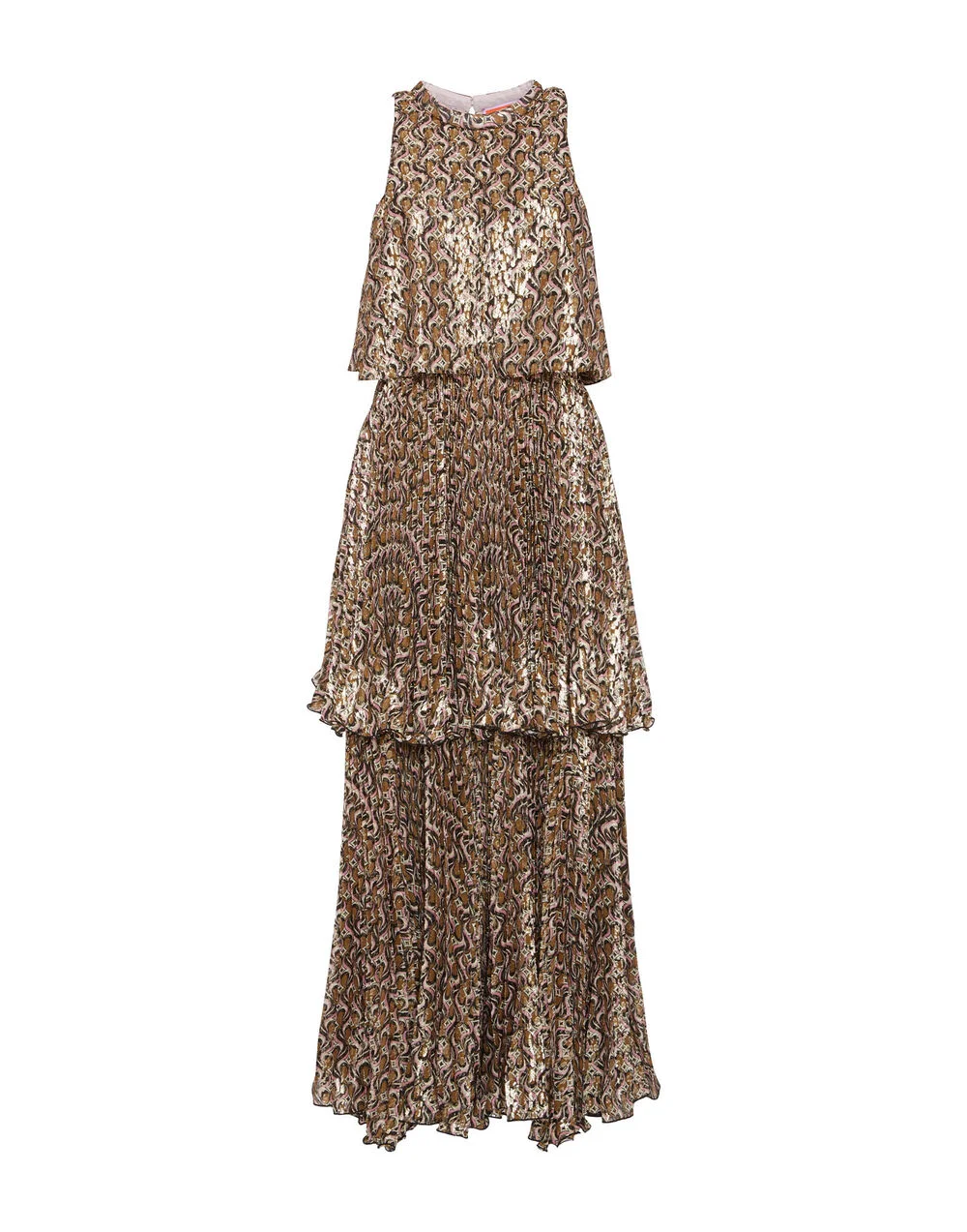 Your search for the perfect NYE outfit is over (or for any other special celebration for that matter). The Ball Drop Dress is THE go-to-gown for the countdown this season, crafted in tiered shimmery fil coupe that glistens while you glide. Wear it with the matching Ball Drop Cape as you head to into the party then remove it for your Cinderella moment at Midnight. Oh, and she has pockets, too. Details & Fit - Fil coupe - Tiered gown - Pockets - Waisted - Small, closed slit in front of chest - 100% Made in Italy - Composition: 73% Silk 27% F. Metalizzata - The model is 180 cm / 5′ 11″ tall and wears a size S