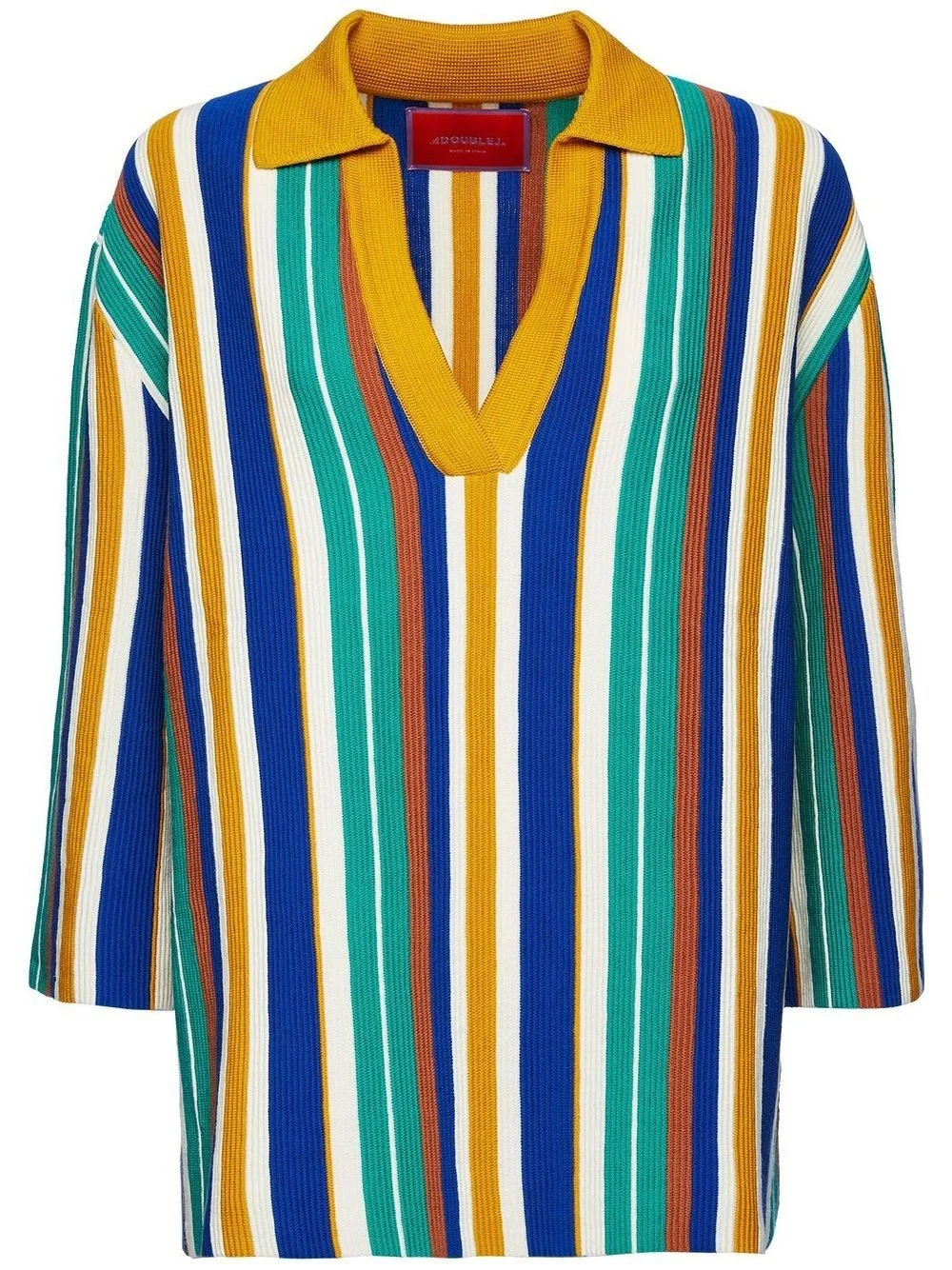 Bay Polo stripe-pattern jumper green/multicolour cotton vertical stripe pattern V-neck three-quarter length sleeves straight hem Made in Italy Composition Cotton 100% Washing instructions Read Manufacturer Guidelines