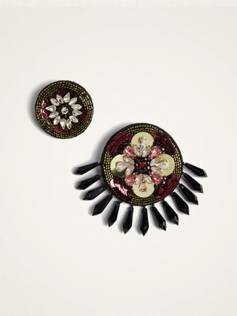 Could these be the fastest way to raise your aesthetic and your outfit energy? This set of two pins - one large, one small - arrives stunningly embroidered with shimmery paillettes and beads, perfectly placed to replicate our Nucleus print. The perfect pop of glittering glamour, these are the perfect addition to an all black outfit or to add a little extra drama to one of our silk dresses. Details & Fit - Set of two pins includes one large and one small - Embroidered - Composition: 30% Resin Stones 20% Glass Beads 20% Metal 15% Acrylic Beads 15% Polyester Felt - Made in India