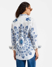 We’ll go ahead and say it - this just might be the perfect shirt. One that’s tailored in all the right places but still oversized enough to feel effortlessly laid back. Crafted in crisp cotton poplin this beauty pops with pretty much anything - your favourite pair of jeans, a printed Pencil Skirt, over a bathing suit, or nothing at all!. Just keep this one close to the chest….your boyfriend will want to steal it, we guarantee. Details & Fit - Cotton poplin - Oversized collared button down - Boxy fit - Made in Italy - Composition: 100% cotton - Garment length: 80cm