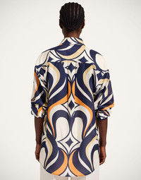 We’ll go ahead and say it - this just might be the perfect shirt. One that’s tailored in all the right places but still oversized enough to feel effortlessly laid back. One for vintage queens in this glorious Jive print, this beauty pops with pretty much anything - your favourite pair of jeans, a printed Pencil Skirt, over a bathing suit, or nothing at all! Oh, and this new silk cotton fabrication is officially all we want to feel against our skin this summer. Details & Fit - Cotton silk - Oversized collared button down - Boxy fit - Made in Italy - Composition: 80% Cotton 20% Silk - The model is 178 cm / 5′ 10″ tall and wears a size S