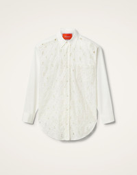 We’ll go ahead and say it - this just might be the perfect shirt. One that’s tailored in all the right places but still oversized enough to feel effortlessly laid back. Crafted in our uber special Sangallo lace this beauty pops with pretty much anything - your favourite pair of jeans, a printed Pencil Skirt, over a bathing suit, or nothing at all!. Just keep this one close to the chest….your boyfriend will want to steal it, we guarantee. Details & Fit - Sangallo lace front - Cotton back - Oversized collared button down - Boxy fit - Made in Italy - Composition: 100% cotton - The model is 177 cm tall and wears a size S - Garment length: 80cm