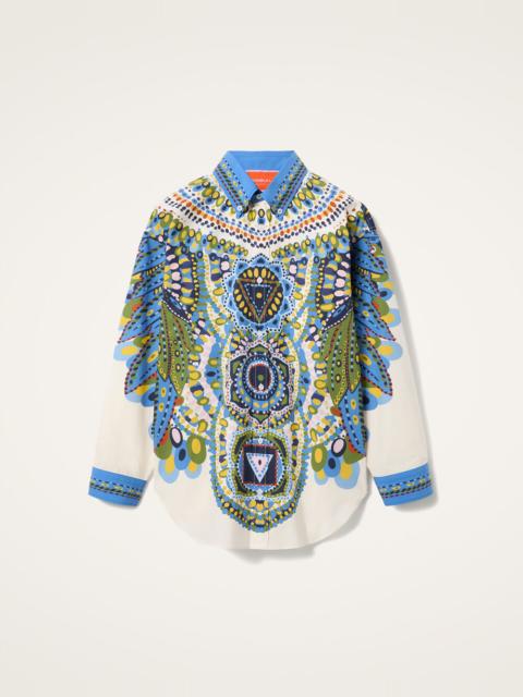 We’ll go ahead and say it - this just might be the perfect shirt. One that’s tailored in all the right places but still oversized enough to feel effortlessly laid back. Crafted in crisp cotton poplin this beauty pops with pretty much anything - your favourite pair of jeans, a printed Pencil Skirt, over a bathing suit, or nothing at all!. Just keep this one close to the chest….your boyfriend will want to steal it, we guarantee. Details & Fit - Cotton poplin - Oversized collared button down - Boxy fit - Made in Italy - Composition: 100% cotton - The model is 180 cm / 5′ 11″ tall and wears a size S