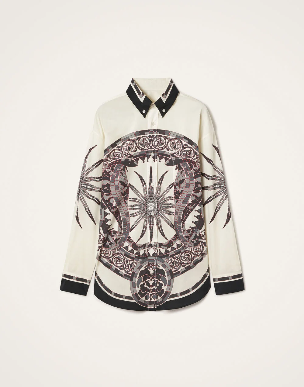We’ll go ahead and say it - this just might be the perfect shirt. One that’s tailored in all the right places but still oversized enough to feel effortlessly laid back. Crafted in crisp cotton poplin in our hand-placed Cobra print, this beauty pops with pretty much anything - your favourite pair of jeans, a printed Pencil Skirt, over a bathing suit, or nothing at all! Just keep this one close to the chest….your boyfriend will want to steal it, we guarantee. Details & Fit - Cotton poplin - Oversized collared button down - Boxy fit - Garment length: 80cm - Made in Italy - Composition: 100% Cotton - The model is 178 cm / 5′ 10″ tall and wears a size S
