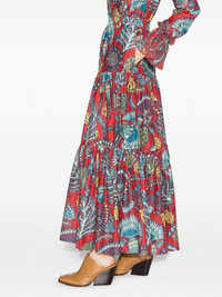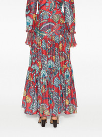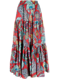 Big floral-print tiered skirt La DoubleJ is renowned for its maximalist patterns, as demonstrated with this tiered maxi skirt. It’s spun from a cotton-silk blend and emblazoned with vivid florals. Highlights - Red/multicolour - Cotton-silk blend - All-over floral print - Tiered design - High-waisted - Elasticated waistband - Two side slit pockets - Long length Made in Italy Composition Cotton 80%, Silk 20% SIZE & FIT Model measurements Height 5 ft 10 in(1.77 m) Bust/Chest 31.1 in(79 cm) Hips 35.03 in(89 cm) Waist 23.62 in(60 cm) FittingInformation This maxi-length skirt is intended to be worn high on the waist The elasticated waist allows for a comfortable fit Made from a midweight non-stretch fabric This piece fits true to size – take your usual size Washing instructions Dry Clean Only