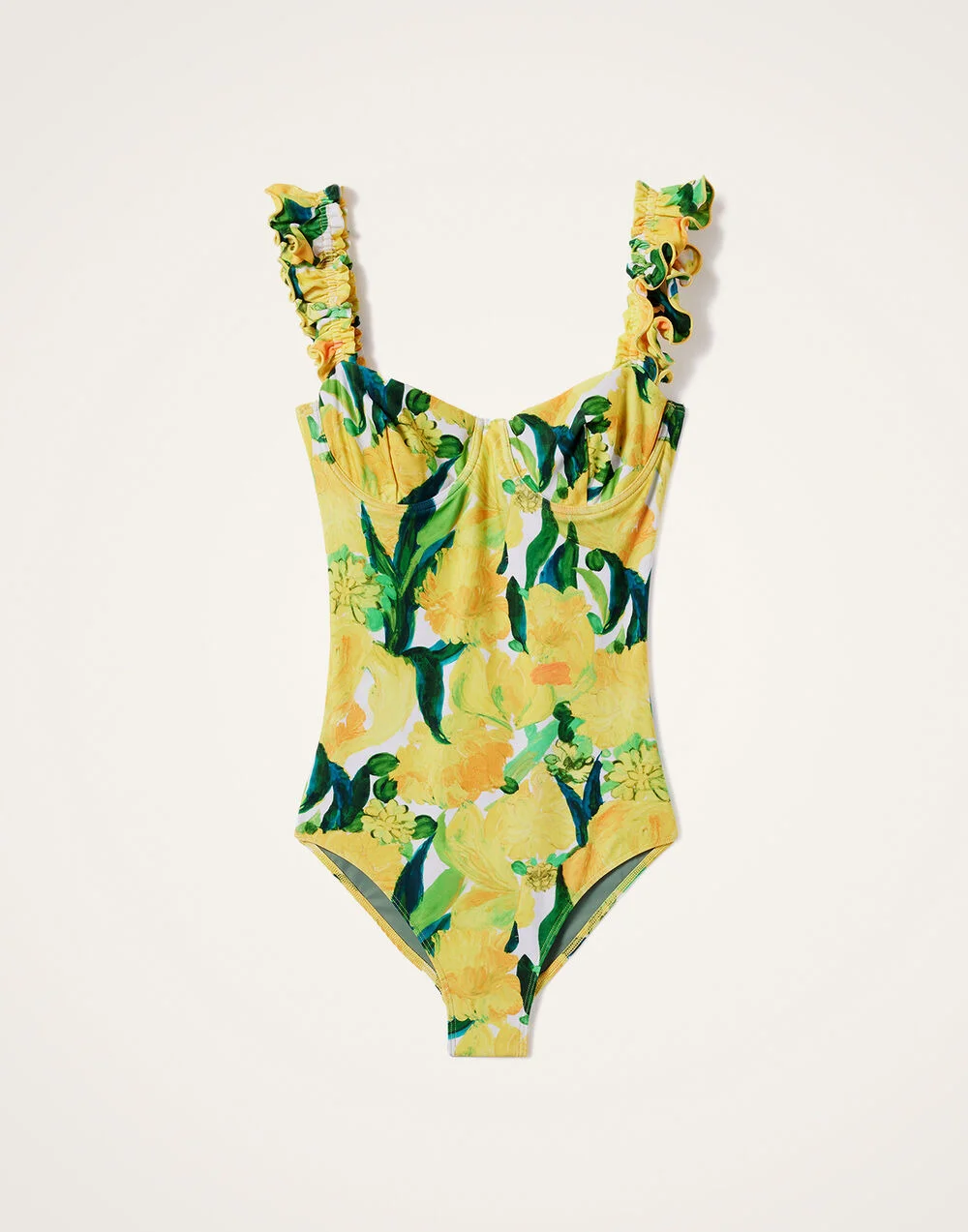 A little bit sweet, a little bit spicy and made for getting salty, the Boop is a super feminine one piece, with underwire cups and a cinching but super comfortable corset through the waist to give you some summer va va voom. Frilled straps down the open back keep this piece more flirty than ferocious. She looks gorgeous with a wrap skirt or Drawstring Pants, the perfect piece for a pinup like her namesake, Betty. Details & Fit - Lycra One piece - Frilled straps - Open back with central strap - Underwire cups - Boning through waist - 100% Made in Italy - Composition: 80% Poliammide 20% Elastane