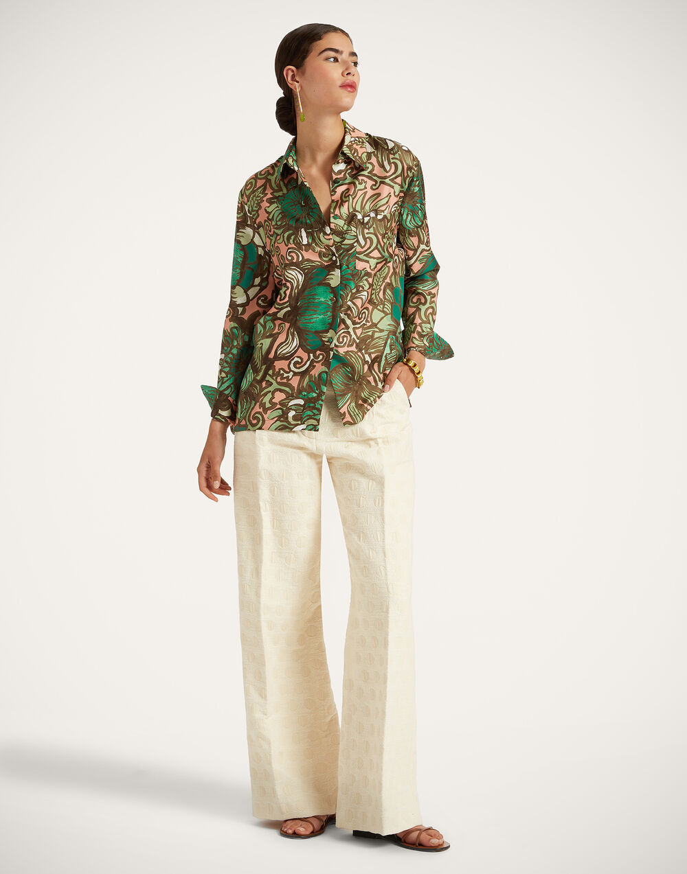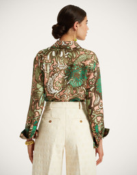 This classic, straight-cut button down shirt is timeless and matches virtually anything in your wardrobe. An LDJ evergreen, the fit is straight and feminine with slightly gathered sleeves that hit at the wrist and we’ve cut it in our glossy silk twill manufactured on the shores of Lake Como. We happen to think it looks very va-va-voom with our skirts and pants to match, but will go just as great with your favorite jeans, too - try it tucked in with the sleeves rolled up. Details & Fit - Silk twill - Loose fit - Silk covered buttons down front and on cuffs - Back box pleat - Curved bottom hem - 100% Made in Italy - Composition: 100% Silk - The model is 177 cm tall and wears a size S - Garment length: 66cm