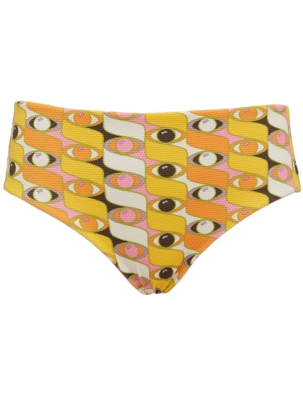 Boy graphic-print bikini briefs Crafted with a mid-rise waist and low-cut legs for coverage, these bikini briefs are patterned with a signature La DoubleJ 'Third Eye' graphic print. Highlights - Yellow - Stretch-design - All-over graphic print - Mid-rise - Be mindful to try on swimwear over your own garments. Made in Italy Composition Polyamide 92%, Elastane 8%