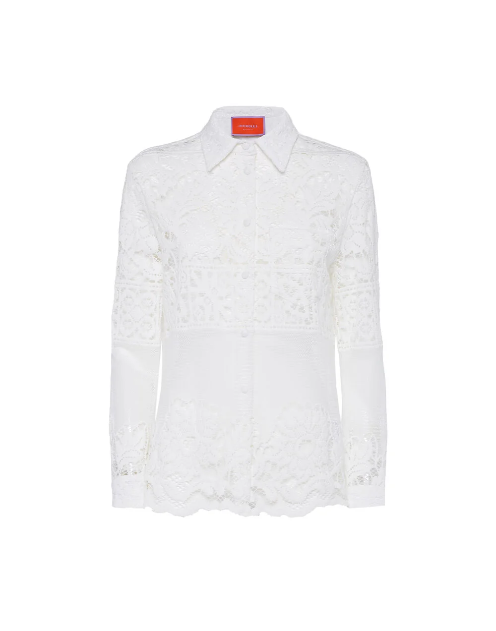 What if we told you we’ve made a shirt that’ll elevate every pant in your wardrobe rotation? Introducing our latest version of the Boy Shirt. Fusing the gamine style of a straight-cut masculine button-down and the unbridled femininity of embroidered cotton lace, this is your round-the-clock option that will make you look forever polished, whatever you pair it with. While J.J. is styling it with the Footloose Lacey Skirt, you can wear yours with dark denim, pencil skirts, your favorite stretchy pants - seriously, anything goes. Details & Fit - Embroidered cotton lace - Slightly loose fit - Back box pleat - Straight-cut - Curved bottom hem - 100% Made in Italy - Composition: 76% Cotton 24% Polyamide - The model is 179 cm tall and wears a size S - Garment length: 66cm