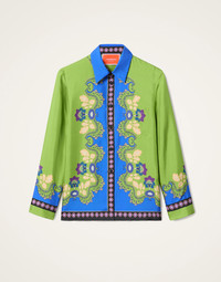 Behold! The classic button-down shirt is transformed into a divine work of art. Crafted in Italian silk with a straight and slightly oversized cut, each of our placee Boy Shirts finds print perfection at LDJ HQ before being meticulously hand-printed by our Italian artisans, creating look-at-me drama that’ll bring joy to your wardrobe. Details & Fit - Regular Fit - Silk twill - Hand-placed print - Silk covered buttons down front and on cuffs - Back box pleat - Curved bottom hem - Made in Italy - Garment length: 66cm - Composition: 100% Silk - The model is 180 cm / 5′ 11″ tall and wears a size S