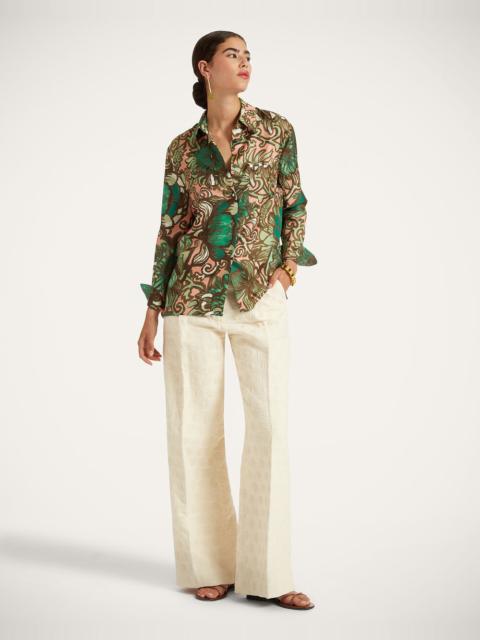 Our classic, straight-cut, button-down Boy Shirt is timeless and matches virtually anything in your wardrobe. An LDJ evergreen, the fit is straight and feminine with slightly gathered sleeves that hit at the wrist and we’ve cut it in our glossy silk twill made on the shores of Lake Como. We happen to think it’s very va-va-voom styled with our skirts and pants to match, but it looks just as great with your favorite jeans - try it tucked in with the sleeves rolled up. Details & Fit - Silk twill - Loose fit - Silk covered buttons down front and on cuffs - Back box pleat - Curved bottom hem - 100% Made in Italy - Composition: 100% Silk - The model is 177 cm / 5′ 9.7″ tall and wears a size S