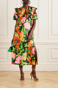 EDITORS'NOTES La DoubleJ's 'Breakfast' dress is perfect for vacations, or bringing that spirit to your weekend closet. Printed with colorful flowers, it's made from airy cotton-poplin and flutters along the off-the-shoulder neckline. SIZE & FIT - Fits true to size, take your normal size - Designed for a loose fit - Elasticated at the neckline for a flexible fit - Lightweight, non-stretchy fabric - Model is 177cm/ 5'10" and is wearing a size Small DETAILS & CARE - Multicolored cotton-poplin - Slips on - 100% cotton - Dry clean - Designer color: Wonderland
