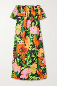 Breakfast off-the-shoulder floral-print cotton-poplin midi dress