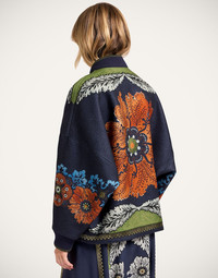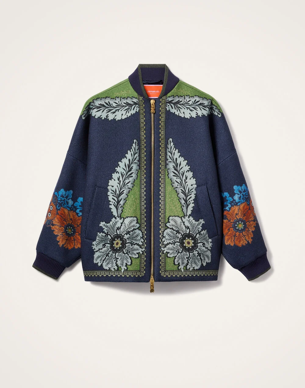 Debbie Harry called - she wants her bomber back. With a slouchy but structured fit with a slightly high-low hem and ribbed knit collar and cuff, this more tailored take on a classic jacket shape is how Italians do oversized outerwear. Crafted in virgin wool and hand-placed with bodacious blooms (don’t miss the one on the back), this ridiculously bellissima version is all about giving you a kick in the happy pants, whether you wear it with jeans and clogs or to your finest invite this festive season. Oh, and enjoy all those smiles as you float down the street. Details & Fit - Oversized wool bomber - Hand-placed print - High-low hem - Knit cuff and collar - Divisible single zipper - Pockets on the side - 100% Made in Italy - Composition: 100% Virgin Wool