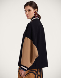 Debbie Harry called - she wants her bomber back. With a slouchy but structured fit with a slightly high-low hem and ribbed knit collar and cuff, this more tailored take on a classic jacket shape is how Italians do oversized outerwear. The decadence is in the details on this beauty, bella - note the intricate scarab detail on the zipper. Details & Fit - Oversized wool bomber - High-low hem - Knit cuff and collar - Divisible single zipper - Pockets on the side - 100% Made in Italy - Composition: 95% Virgin Wool 5% Polyamide - The model is 180 cm / 5′ 11″ tall and wears a size S