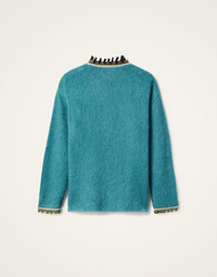 For when you’re perusing the vintage thrift stores, but your fellow bargain hunters can’t stop eyeing your sweater. The Camden Jumper is effortlessly cool, crafted from a luxurious brushed wool that is surprisingly light but crave-ably cozy. A beautiful outfit elevator in zingy turquoise to raise your vibration through winter and beyond. Details & Fit - Brushed wool - Slouchy oversized fit - Hits at mid hip - Ribbed collar - 100% Made in Italy - Composition: 61% Mohair 27% Polyamide 12% Wool - Garment length: 64cm