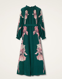 Named after the goddess of abundance, the gorgeous Cerere Dress brims with color and romance. Crafted from ultra lightweight silk voile that drapes like a dream, this floor-sweeping bella has an airy silhouette that can be cinched at the waist with removable sash if more shape is your thing. We love the romance in the little details - buttons at the neck, ruffle collar, puff sleeves - plus this gorgeous dark floral print hand-placed by our Italian craftspeople. Details & Fit - Silk voile - Button collar - Removable sash - Puff sleeves - Elasticated cuffs - Throw on design - Hand-placed print - 100% Made in Italy - Composition: 100% Silk - The model is 175 cm / 5′ 9″ tall and wears a size S