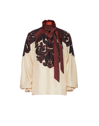 There’s nothing like a little romance to zhuzh up your wardrobe separates. Light, beautiful and unapologetically feminine, the Cerere Blouse enraptures in this glorious hand-placed Corsini print. Its vintage-inspired shape appeals to our whimsy side and is finished with a detachable foulard at the collar that can be tied, styled as a belt or let loose. Crafted from spring in our fluid silk twill for an upscale finish that works its wonder with jeans at the weekend too. Details & Fit - Silk voile - Hand-placed print - Detachable neck sash secured with loops - V neck - Puff sleeves - 100% Made in Italy - Composition: 100% Silk