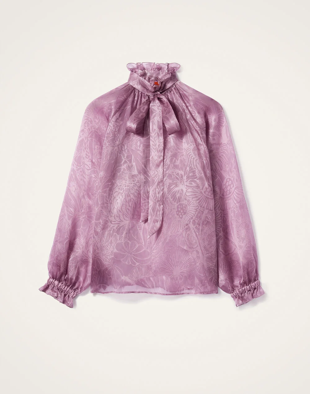 There’s nothing like a little romance to zhuzh up your wardrobe separates. Light, beautiful and unapologetically feminine, the Cerere Blouse is a fierce feminine wonder, new in our floatier Italian silk organdie for an extra soft touch. Its vintage-inspired shape appeals to our whimsy side and is finished with a detachable foulard at the collar that can be tied, styled as a belt or let loose. In our fabulously fun Fun-gi print slip her into your rotation any time of day, any time of year. Details & Fit - Silk organdie - Hand-placed print - Detachable neck sash secured with loops - V neck - Puff sleeves - 100% Made in Italy - Composition: 100% Silk - The model is 176 cm / 5′ 9″ tall and wears a size S