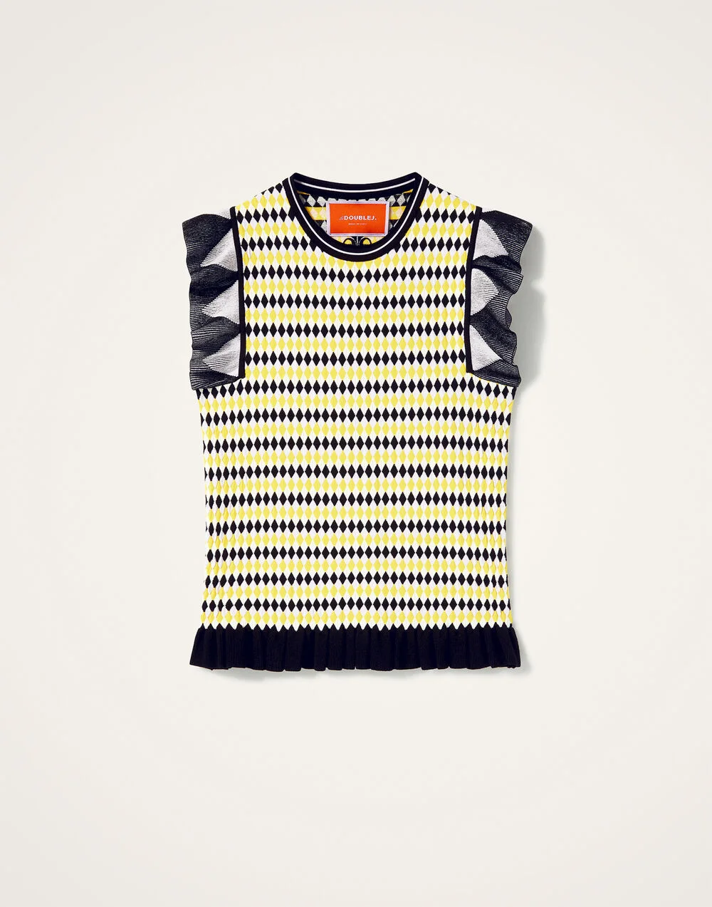 Who says a sweater vests can’t be special? This stunning sleeveless piece arrives with rules at the shoulders and hem in a compact knit that hugs you in all the right places. With it’s mini diamond pattern it pairs well with pretty much everything but we love it with its matching Checkers Skirt. Details & Fit - Compact knit - Sleeveless top - Ruche at sleeves and hem - Made in Italy - Composition: 83% Viscose 17% Polyester - The model is 178 cm / 5′ 10″ tall and wears a size S
