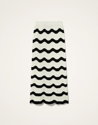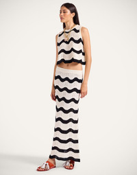 Make time for a monochrome moment this season with this optical skirt ripe for summer stunning. A nod to LDJ’s vintage days, it takes inspiration from the 1970s with its A-line silhouette and two-tone zig-zags woven in our bellissima 100% cotton yarn. Also, it’s versatile: two straps at the side mean that you can wear it high over your shoulders as a dress, or pull it low as a skirt and let the straps loose. Suitcase saving style never looked so good. Details & Fit - Knit chevron - 2-in-1 style that can be worn as a dress or skirt - Elasticated strap that you can wear over bust or hips. - Open weave - 100% Made in Italy - Composition: 100% Cotton - The model is 178 cm / 5′ 10″ tall and wears a size S