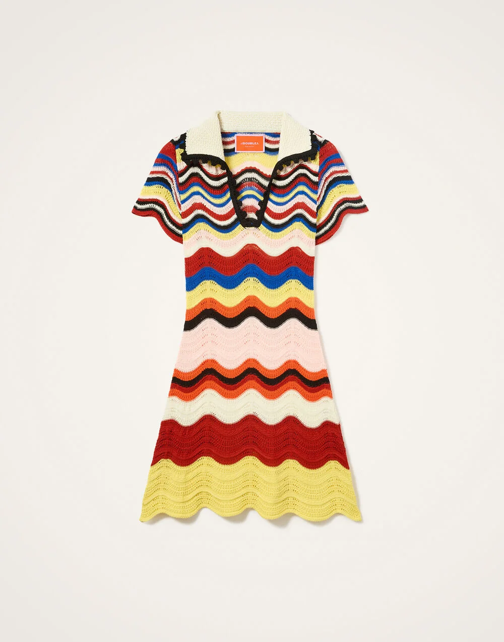 Crafted in an open weave Italian cotton knit, this buttery soft mini dress has a timeless polo collar and slightly flared (and super flirty) skirt. It’s giving Amelie on the Amalfi, amore. Details & Fit - Cotton knit - Multicolour stripe - Open weave - Polo collar - Short sleeve - Made in Italy - Composition: 100% cotton - The model is 178 cm / 5′ 10″ tall and wears a size S
