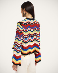 The perfect summer sweater has just landed in the form of this cute mood-boosting multicolour Chevron Crop. Layer it over your swimsuit post swim or with the matching pieces from our full Chevron knit family. Details & Fit - Cropped knit sweater - Multicolor - 100% Made in Italy - Composition: 100% cotton - The model is 178 cm / 5′ 10″ tall and wears a size S