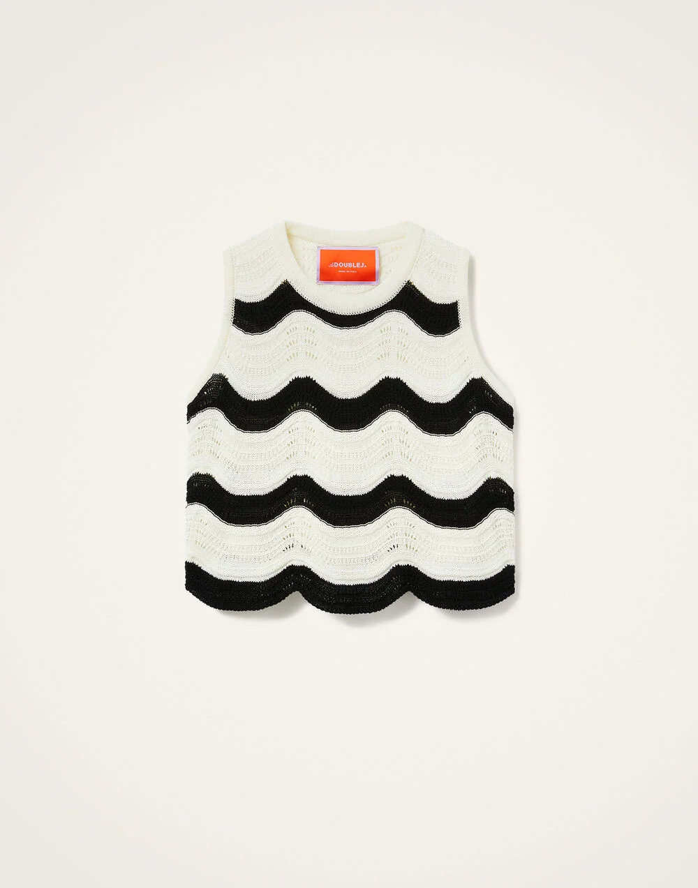 A flirty crochet top with vintage appeal to manifest your own summer of love. Sleeveless with a mock neck, this bella’s flared silhouette is woven in 100% cotton and cropped at the belly button for sassy summer energy. Minimalist? Wear it over your fave white shirt. Maximalist? Go bold with the matching skirt. Details & Fit - Knit chevron - Crop top - Cropped at belly button - Sleeveless - Mock neck - 100% Made in Italy - Composition: 100% Cotton - The model is 178 cm / 5′ 10″ tall and wears a size S